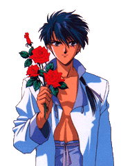 Looking traditional, Tamahome on a pretty azure background. I think I'm beginning to exhaust my flow of clever things to say about anime guys. @_@ After a while, they all look the same.