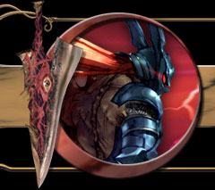 Years before Siegfried's birth, opressed German peasants revolted against the Holy Roman Empire. The Empire's forces had been weakened by the Italian Wars, and this was finally the peasant's chance for freedom. One of their champions was Sir Frederick, a brave knight who led the peasants' forces into battle. While on one campaign, Frederick met a lovely young woman named Margaret and spent the night in her arms. After nine long months of battle, Frederick returned to find that Margaret had given birth to their son. They named their son Siegfried, after a legendary hero, and then the two were married. As Siegfried grew, his father taught him swordsmanship. Siegfried loved his father, but the "gentle knight" had many duties to perform. Frederick embarked on a foreign crusade, promising to return soon. Without his father's gentle hand to guide him, young Siegfried fell into the wrong crowds and soon joined a band of outlaws. His strength grew and he formed his own band of theives known as the Schwarzwind (Black Wind). One day, Siegfried hatched his master plan. The Schwarzwind could hunt down the knights who had run away from the crusades and steal their armor and loot. This would make the Shwarzwind rich, and Siegfried a very powerful man. That night, a group of war-weary knights approached, and the Schwarzwind ambushed them. The knights, fatigued from battle and the long march home, were no match for the theives and were defeated easily. Siegfried hunted down and killed the knight's commander himself, and chopped off his head with his proud Zweihander. He held the decapitated head up in triumph for the rest of the band to see, and it was then that Siegfried finally got a good look at the commander's face. It was his father! Siegfried let out a horrified scream, and his mind snapped. He fled into the forest in grief and fear.