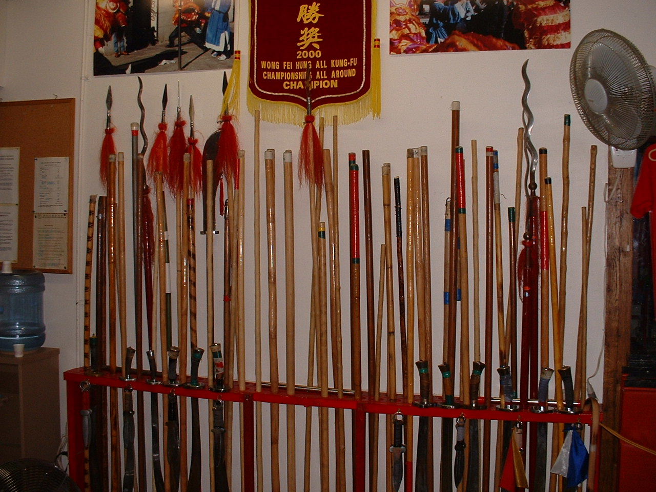 Students will have the opportunity to not only learn empty hand forms but also to train with weapons during group classes and private instruction.. Students begin with the stick and work their way up through such weapons as the broadsword, flute, spear, and tiger fork. In addition, we teach double handed weapons such as double broadsword, double daggers, and double hooks among others. Weapons training is closely supervised, and we provide a place for students to keep their weapons at the school. Weapons are purchased through the school to ensure quality. |