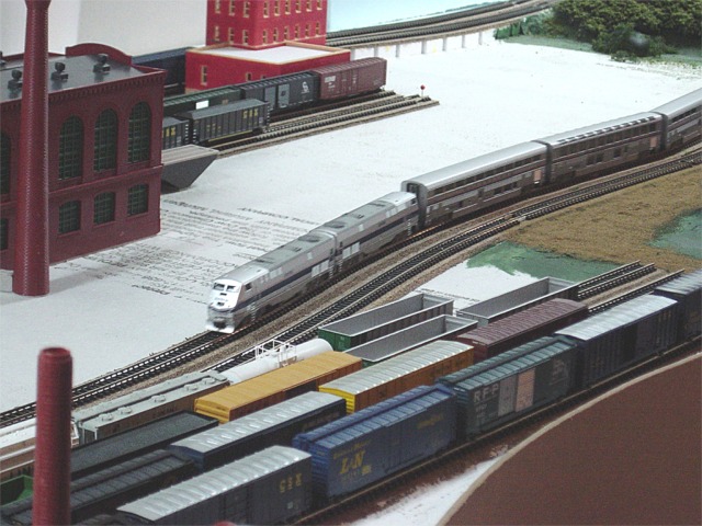 The layout was quite a bit different for the second operating session as compared to the first. Yard capacity was greatly expanded for Connellsville and Cumberland, there is now staging for the Mountain Subdivision and several more trains on the schedule. One of these trains is the Capitol Limited, shown here coming into Connellsville.