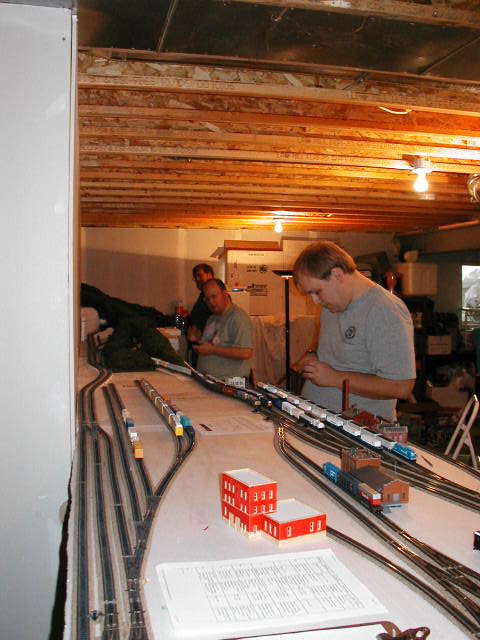 So far, no big problems have cropped up with the timetable or the layout's operation. A copy of the timetable can be see in the foreground of the picture. Well, so far so good, so LET'S RUN SOME TRAINS!!!