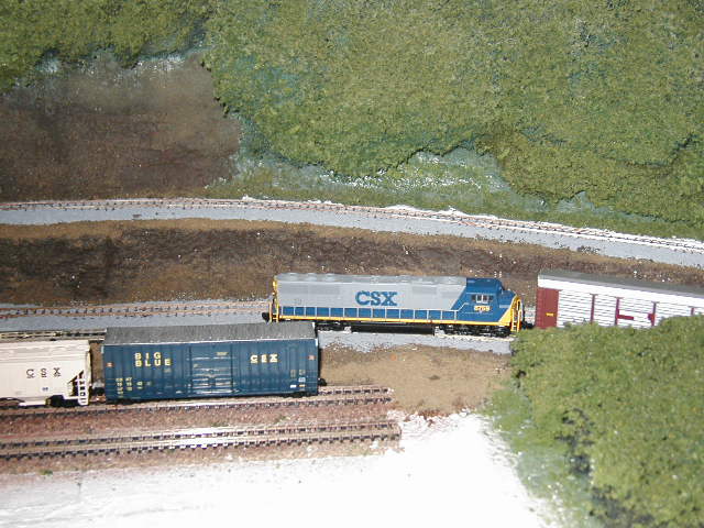 In this shot we see X257 going through Rockwood on its way to the FMP subdivision while the U452 mine shifter works the mine lead in the background. The coal train on the Salisburry Sub is required to take a caboose.