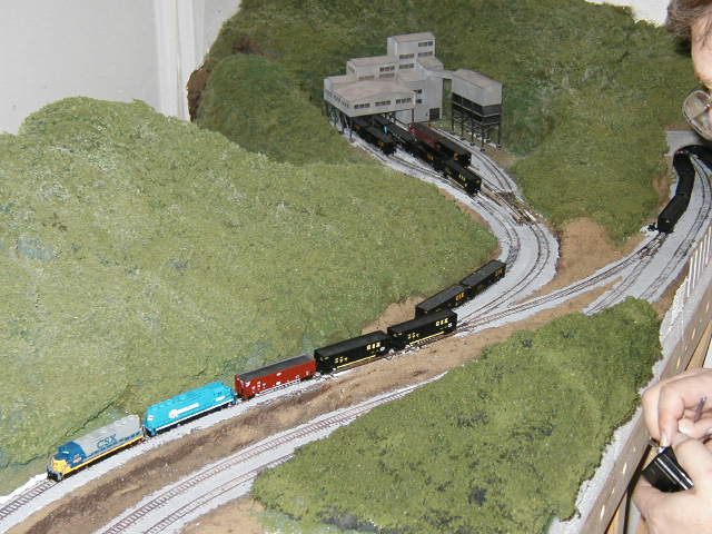 On a cold November Saturday, Phil, John and Joe came over to give the Sandpatch Subdivision its first shakedown run. For much of the track, this will be the first day trains have ever run on the rails. In the morning, I was scrambling adding in a couple of additional feeders to track sections that I had found needed them. I also added in a little additional track to Cumberland yard.