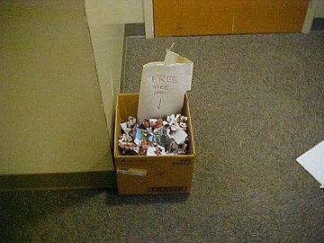 After we tired of seeing them (alas, it can happen), which took about a month, we scraped them off the wall and tried to share the love by placing them in a box labeled "Free- Take One." Unfortunately, we don't think anyone took advantage of the opportunity.