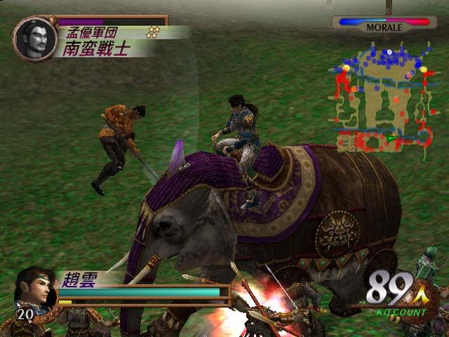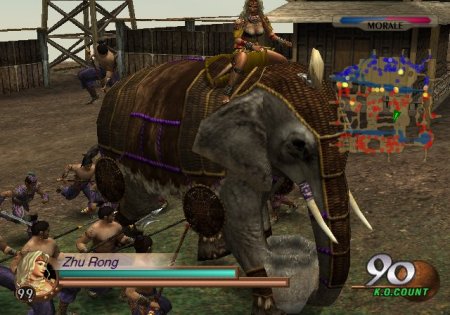 The elephant mount is only available in the Nanman Campaign stage. This normal elephant can be ridden at any rank. You can kick anyone and you can smash through the thin weak walls. You can always use this mount to break through stuff and knock generals off their elephants with the charge attack. However the elephant is pretty slow! |