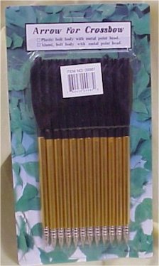These are plastic arrows for crossbow. It is a set of 12. Same Brand as pictured, except its only the arrows. They measure 6 1/2 inches long.