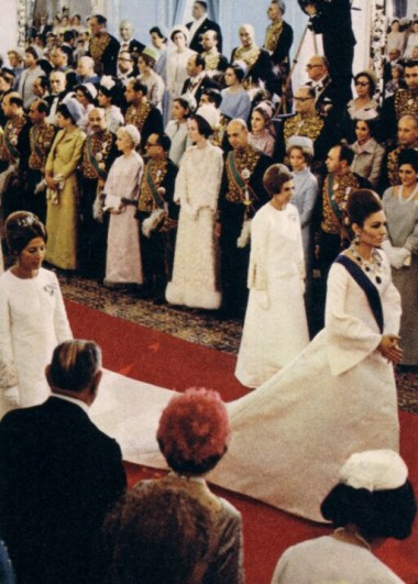 Three minutes later, the eyes turned to the entrance again: the Queen, the Empress, the Shahbanou, followed by 6 maids of honour who took care of the fantastic train of her impressive dress, had entered the Grand Hall of the Golestan Palace. The entrance of Farah was the most impressive sight that is possible to imagine. A journalist in the room, impressed by the allure of the Empress, summed up his impression in a remarkable sentence that he broadcasted to his country saying that the Shahbanou had entered the room “with all the majesty of Cleopatra penetrating in the ancient Court of Egypt.” There aren’t photos to recall the legendary beauty of Cleopatra and maybe it could have been nothing but a legend. Farah’s beauty was there and it could be contemplated by millions in Iran, an Iran she had made happier with the heir she had given, and around the world, the world in which she had made Iran famous.