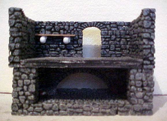 Here's the backside of the storage room/lower level. Note the wooden shelf on brackets (from the Wizard's Tower mold, I think).