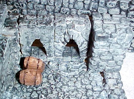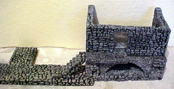 Here's a close-up of the guard-room... there will be 3 stairs going down to it. It sits atop a small room on the lower level - I used the Hirst bridge mold for the arch.