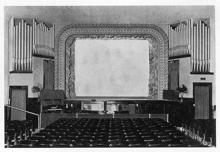 One manual Schuelke organ in the Lexington Theatre, Milwaukee, featuring display pipes by Jerome B. Meyer. The pipes on the right are dummies installed for symmetry. --from The Encyclopedia of the American Theatre Organ