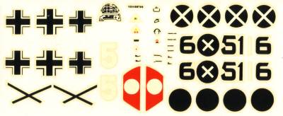 | Decals sheets gives four options, two German and two Spanish First is B-2 white 5 of II/JG 132 "Richthofen" in 1937. Another is C model and also white 5 of I/JG 132 during Polish campain. Spanish planes are model B-1 6*51 of Condor legion and B-2 6*56. Decals looks good, but are yellowed. There is also some stencils and decal for instrument panel.