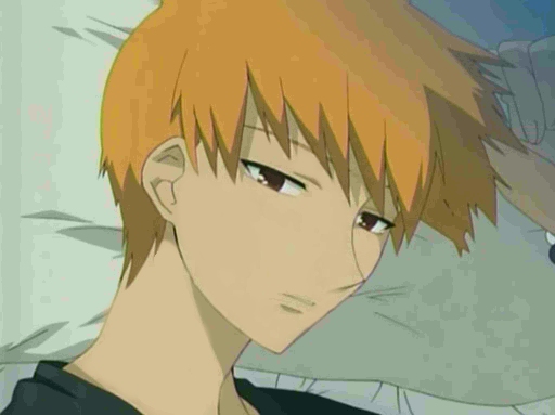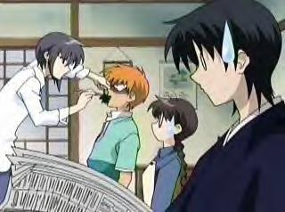 Kyou often has a rather faraway expression on his face. He's probably imagining how it would feel to finally defeat Yuki. Okay, I know he's actually apologizing to Tohru for being a jerk, but is Yuki ever far from his thoughts?
