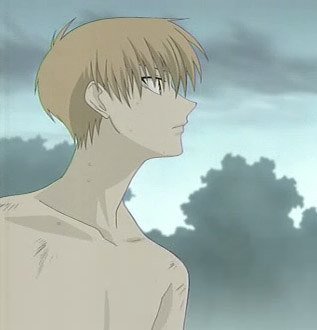 Of course, that doesn't mean Kyou can't take off his shirt. Okay, so it probably got torn off while he was transforming into evil 3rd monster form, but still.