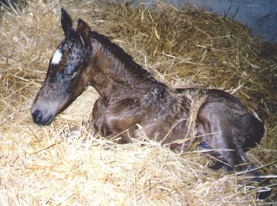 wonder boven wonder heeft dit hengstje niet de bonte kleur van zijn ouders overgenomen. Hij is het eerste veulentje van Laila, dus wie weet wat ze nog meer brengt. Hij is heel lief en aanhankelijk, maar ook zeer speels.