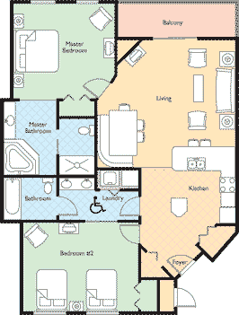 Click a spot in the map below to view the rooms in one of our 2-bedroom units.