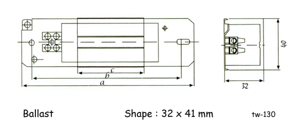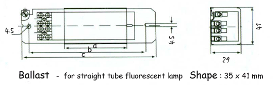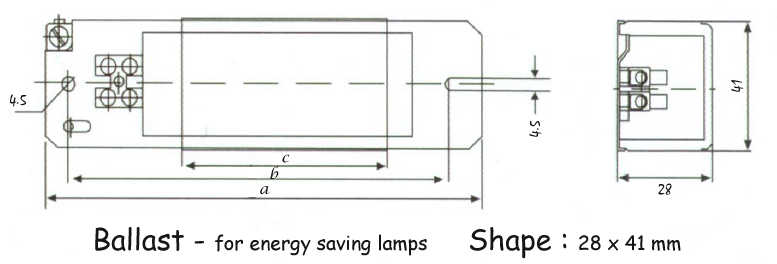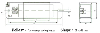 Ballast for energy saving lamps Shape : 28 x 41 mm tw 130 |