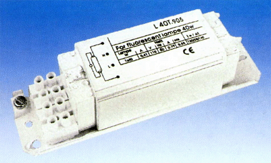 Ballast Electromagnetic ballast for single-ended compact fluorescent lamps and two-ended straight tube fluorescent lamps.