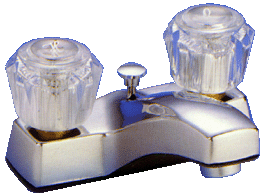Model# 872t-16 4" Lavatory center faucet, Cast brass underbody, chrome plated, plastic spout w/ acrylic handle, with pop up.