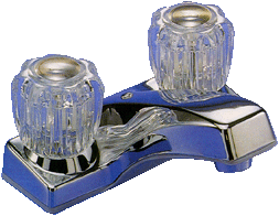 Model# 872t-01 4" Lavatory center faucet, Cast brass underbody, chrome plated, with acrylic handle, without pop up.