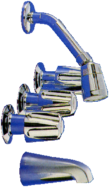 Model# 872t-81 Three handles tub and shower valves, chrome plated.