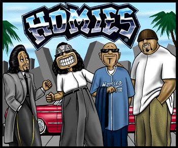 Their separate and distinct personalities and characteristics together make up a single, composite entity that is the "HOMIES." In an inner-city world plagued by poverty, oppression, violence, and drugs, the Homies have formed a strong and binding cultural support system that enables them to overcome the surrounding negativity and allows for laughter and good times as an anecdote for reality. The word "Homies" itself is a popular street term that refers to someone from your hometown or, in a broader sense, anyone that you would acknowledge as your friend. In use in the West Coast Latino community for decades, the word "Homies" has crossed over into the now mainstream Hip-Hop street culture that has taken America's young people by storm.
