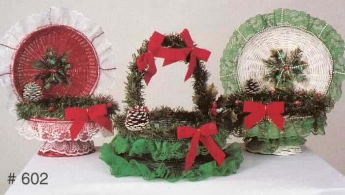 Check Out Our Christmas Baskets! Great for holding cards, nuts, candy, and cake. Nice for gift giving. Please use your imagination. #600, #601 (each sold separately) & #602 (set of three).