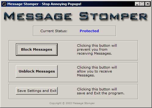 one of these messages. Message Stomper will block each