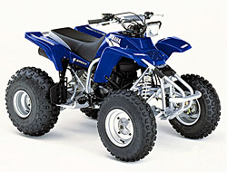 Le WARRIOR YFM350X Type de moteur: 4 temps, monocylindre. Poids à vide: 180kg (397ib) Garde au sol: 12cm (4,9``) Largueur totale: 184cm (72,4``) Transmission: 6 vitesses, manuelle, marche arrière. PDSF: 7,099 |