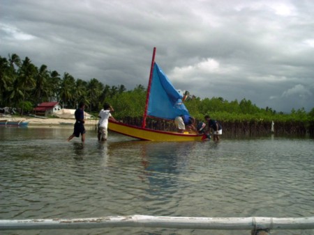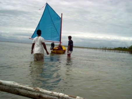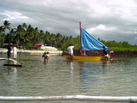 Getting the sail raised. She will float in a teaspoon-full of water.