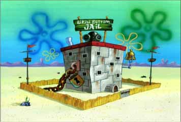 This is the only place tougher than The Salty Spitoon. It's...The Bikini Bottom Jail! Mrs. Puff has been here before, and she liked it! But that's because Spongebob drives her crazy, and it was the only place away from him. But, anyone else would snap if they were here. It houses the toughest, roughest, baddest fish under the sea! So obey the law, or else!