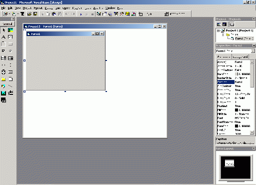 When you open Visual Studio, and choose Standard EXE from the openning menu, you will come up to a screen that looks like this.