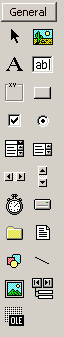 This covers the general toolbox for Visual Studio 6.0. The Toolbox is on the left side and looks like this.