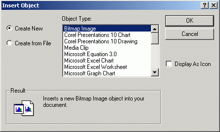 The OLE button gives you a bundle of other features that you can add into a box. You can add microsoft files, to making bitmap files, etc.
