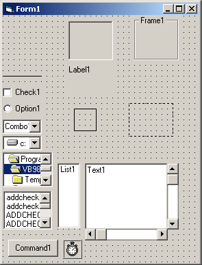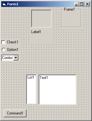 Click the Command Button button and put it at the bottom left of the form. Your form should now look like this, in case you are getting lost with your buttons and boxes.