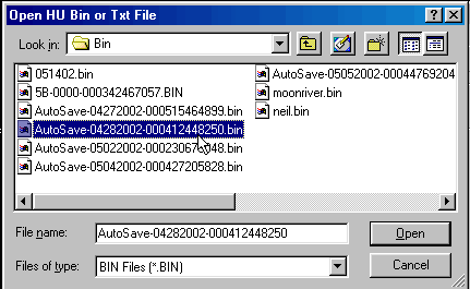 After the card is unlooped you will see the above screen select a .bin file and choose open.