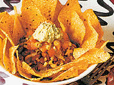 (con carne o pollo, frijoles, queso, guacamole, crema y jalapeño)