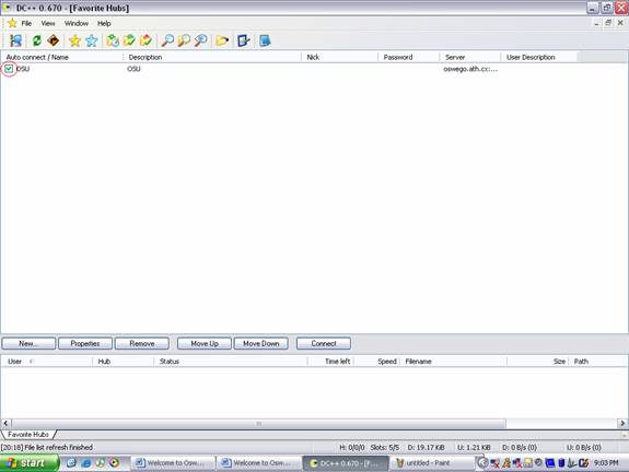 15) Double click on OSU. Congraulations, you are now part of the hub! If you need any help or get any strange error messages feel free to IM me at OswegoDCPlusPlus