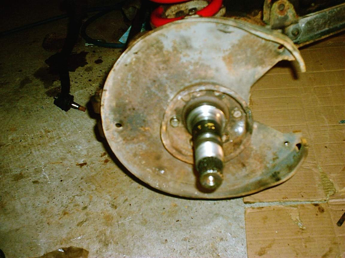 Heres after the old Axle was yanked out and the new one sitting in its soon to be bolted in place