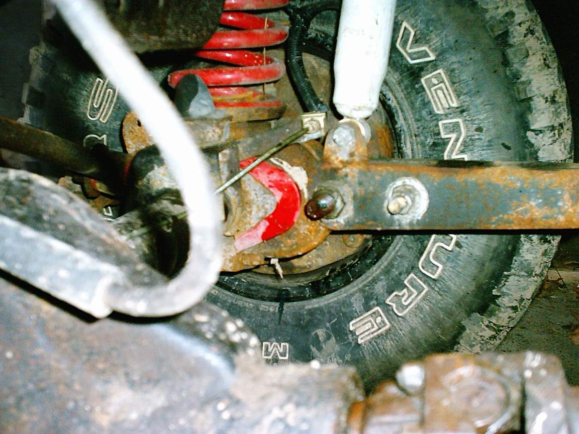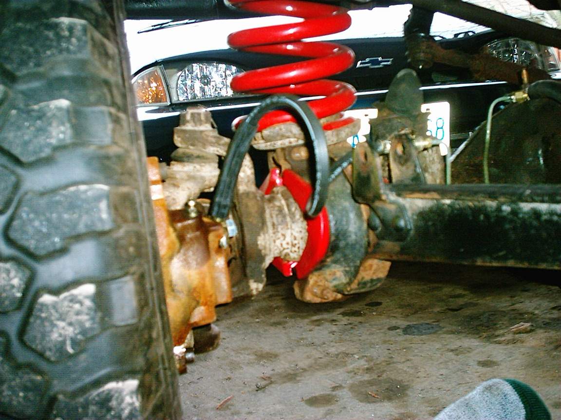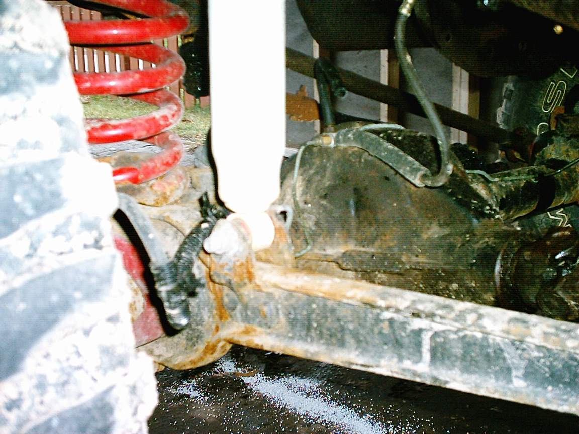 ABOVE PHOTO : Here you see the stock "TTB" Set-up in the front of my BroncoII that is an Dana-35 axle and as you can see its on an hinge set-up compared to being "SOLID"