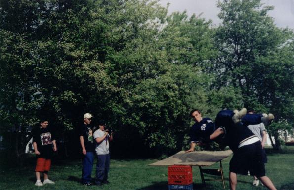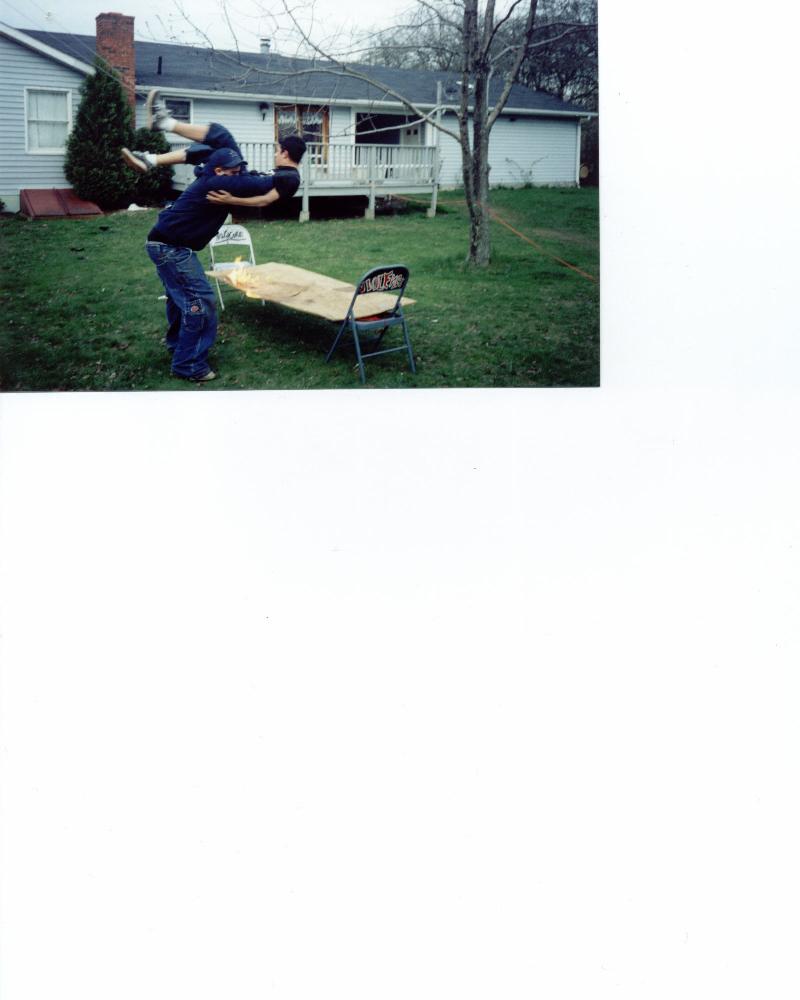 NEW PICS: D-Smoothy & Justin Sane w/ a Shooting Star/Leg Drop onto Tonic w/ a ladder on him D-Smoothy powerbombs Tonic threw a double stacked table Justin Sane with a nice elbow drop to the outside Justin Sane goes for a hurricanna to Tonic off a ladder Crisis with the Connecticut Cloverleaf on Coragous Cory Tonic powerbombs Justin Sane threw a ladder D-Smoothy hits Toke Mike with the 69 Driver onto a ladder D-Smoothy puts Toke Mike threw a table with the D-Bomb Toke Mike with a senton bomb off the tramp onto Justin Sane who has a chair ontop of him. TV Tapings: Tonic Jumps off a Shed! Flipping Stomp by Double M onto D-Smoothy Jed Driver off the trampoline to Tonic! Hostile Youth with the Hidden Agenda onto Justin Sane. D-Bone's Leg Gets Cut Open On a Car! A Second Pic Of D-Bones Bloody Leg! Justin Sane gets Back Body Dropped Off The Tramp! An Awesome Snap Brain Buster By D-Bone! Cra-Z Craig & Corageous Cory Double Power Bomb Justin Sane! Corageous Cory gives Justin Sane a Huge Chair Shot! A Nasty Pic Of Double M Busted Open! Another Nasty Pic Of McCoy Busted! A Cool Pic Of OverDose Busted! A Flipping Plancha Off Tramp! Corageous Cory Elbows Justin Sane in the Face Off a Ladder! Justin Sane with an INSANE swanton bomb off the trampoline! Tonic german suplexes mccoy on the ice!! McCoy hits a flipping plancha on Tonic and OD! Overdose hits a northern lights suplex through a table! Coragous with his famous elbow Toke-Mike with a brutal powerbomb threw a table D-Smoothy is busted open #1 D-Smoothy is busted open #2 D-Smoothy busted open 3 Smoothys busted, but still having fun Smoothys busted, for the 100th time in his career Smooth busted open but McCoys moonsault Smoothys busted, but still having fun, part 2 Hardcore Happenings: Justin Sane Dives Off A 10 Foot Playset onto Cory!! Justin Sane gets cut open by Barbwire! A Pic Of D-Bone wearing a Crimson Mask! D-Bone Dives Off a Chair on to Cra-Z! After Missing a Senton,A Bloody D-Bone Can't Get out of the bush! Unleashed: Cory and Justin Stair Down A Great Side Walk Slam By Cory! Flaming Table!(Big Flames!) Justin Sane gets PowerBombed Through the Flaming Table! D-Bone Gives Violence an Acid Drop! flipping plancha Off The Tramp by D-Bone! D-Bone Splahes Violence Off The Deck Through a table!! Violence Hold Up his Silver! Dawn of Disaster Shades of Mick Foley, Justin Sane Poses on top of the Roof! Justn Sane Splashes Cory off the Roof! Dead Or Alive 2K A Flaming Chair Shot By Tonic to Justin Sane! Justin Sane hits the Falcon Arrow On Tonic! Justin Sane hits a Elavator Drop, but hits a Sledge-O-Matic! Justin Sane hits a Moonsault off the Pool Side Onto Tonic Through a Table!!(Awesome Pic!) OverDose Hits the OD on Double M! Jed Hits a PileDriver off The Tramp, through a Table on D-Smoothy!!