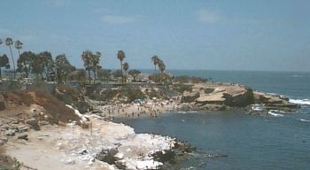 La Jolla Shores is distinguishable from the Cove because, unlike the Cove, the cliffs are recessed about two hundred feet or so from the water line. There is a strip of sand that runs from one end of the cliffs to the other. On the one side of the strip, there is the ocean, and on the other side, there is the two lane road that is one of two that connects Torrey Pines to Del Mar. This road, although heavily traveled, has never interfered with a great day at the beach for me. |