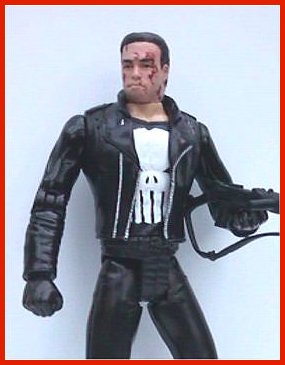 i did a fair bit of resanding anyway, cutting down the head trying to make him less 'arnie-like' and adding some extra milliput to the hair to get it as i wanted. Painting him was pretty easy but the punisher symbol was a pain when the jacket kept closing during dryng. The blood was a last minute addition but i'm really pleased with the way it came out.