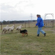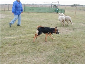 We tested Valdaleya in schutzhund today, she did great. What we are wanting to see here is that she is interested in the tug, and not backing away from Ken. We would like to see her bark, but that isn't to big of a deal they will do this with training. She is all prey/play drives. She did bite and carry the tug, but we didn't get it in a picture. We will be taking her out and working more with her so we will get more pictures of her doing schutzhund.