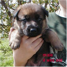 This is Ellies 4th breeding. She has produces some amazing dogs, with very good health. She is a red sable in color and will produce both her look and his. Mika is a very happy and outgoing boy, he has great drives and a very nice black and red coat. These pups will be good for any sport that you are looking to get into, and as wonderful house pets.