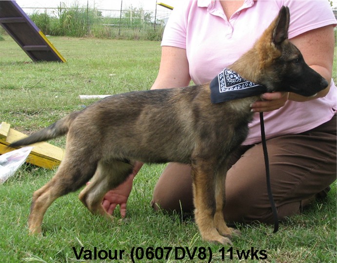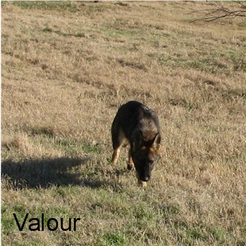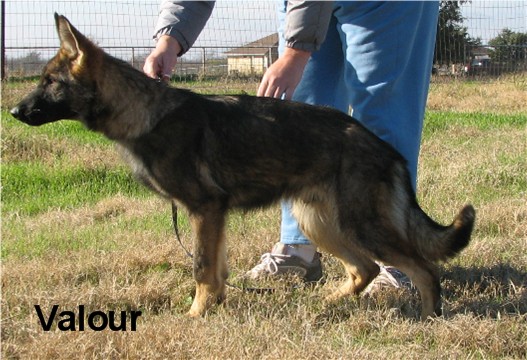 Valeur's temperment test results are.......MOSTLY 3s and 4s. Click on the link above to print out a copy of the test and record his scores. He is a softer pup and will do great with a pet home, and will loved to babied and loved on all the time. He will be easy to train with positive type of training, and will not need alot of correction.