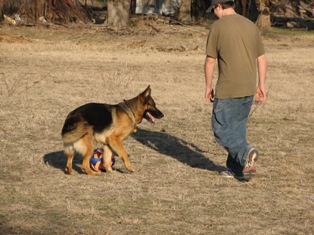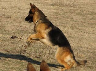Kimba is a new girl for us, she has her BH,AD. She is very sweet and loves to play. We have tested on the sheep and is showing a lot of promise. We are very excited about having her in our breeding program and are going to have a lot of fun training her. She has a loving temperament, good hips and work ethic.