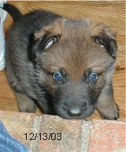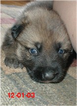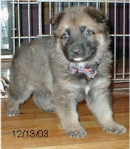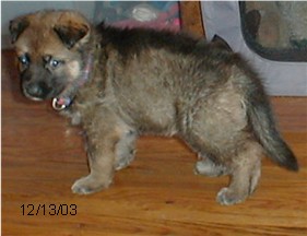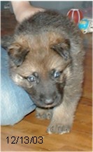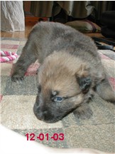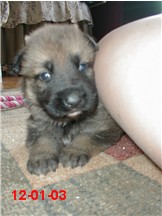 This is a sable female. She has a very nice plush coat and so far a dark eye. She also has a very nice plush coat. she so far is doing very well and will reconize us as we come to visit them. She is a very sweet pup and likes to be right with you.