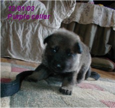 This is a sable female. She also has a very nice plush coat. she so far is doing very well and will reconize us as we come to visit them. She is a very sweet pup and likes to be right with you.