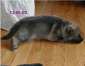 The pups are now 3 weeks old. They are walking all over the place. They will respond when we come to the box and play with them. They know our voices and will bark and howl when we take one of the pups away from them. They are growing like crazy and will begin to eat real food along with mom's milk.