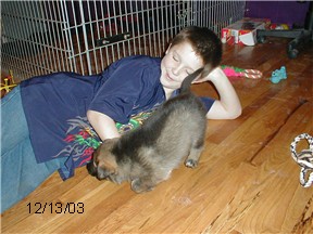 Below you can see Sonja's sisters. Maya is her mom pictured left, and Atlas is her dad, pictured right. She is a very outgoing girl, with great color and bone. She is very bold, and quick to bark and people in the drive. She is housetrained and crate trained. She is high energy and needs a home that does quite a bit with her. Jogging, hiking, agility, ect. These are the most current pictures of her taken on 6/16/04. You can see more pictures of her as she has grown up below.